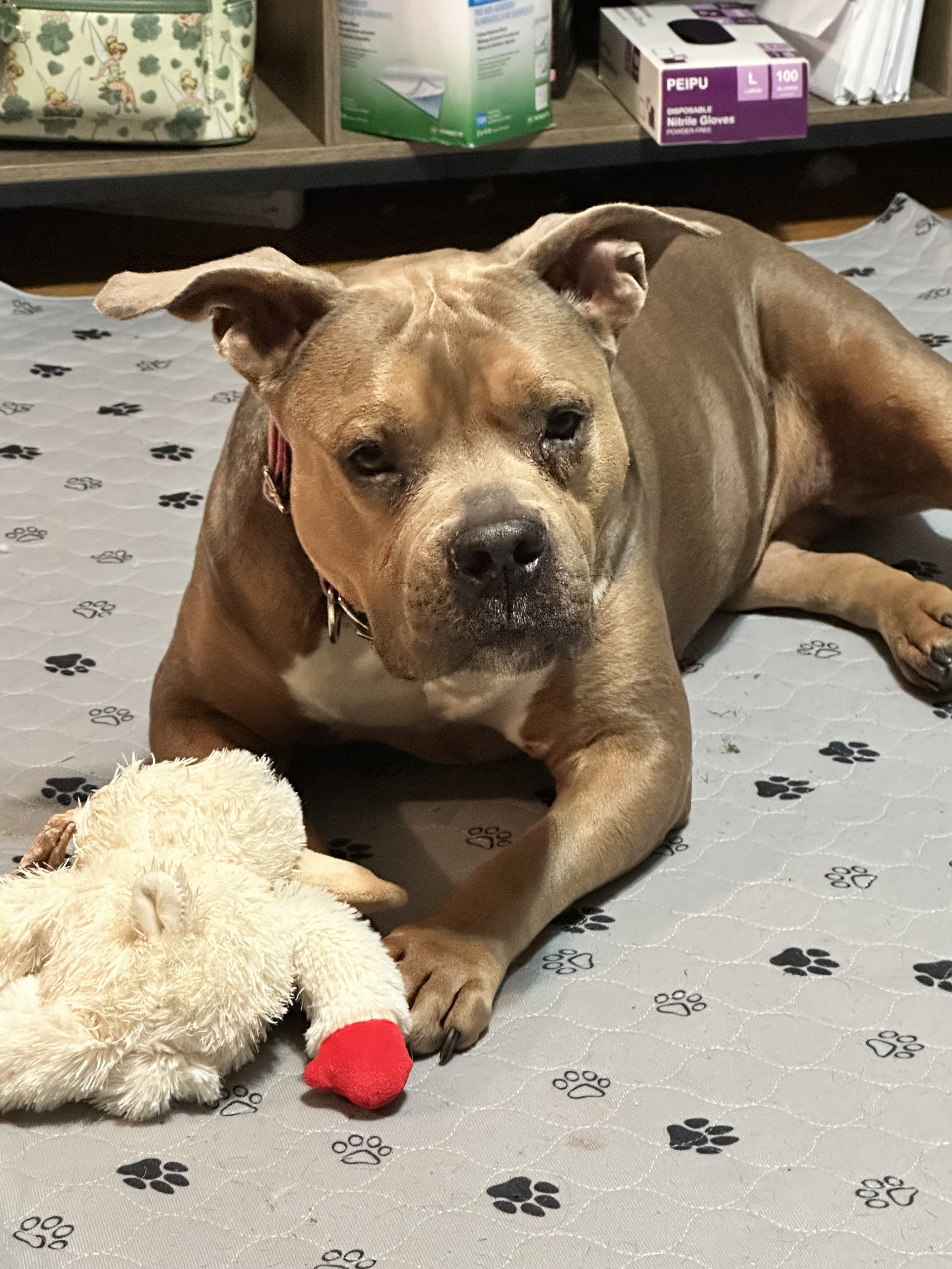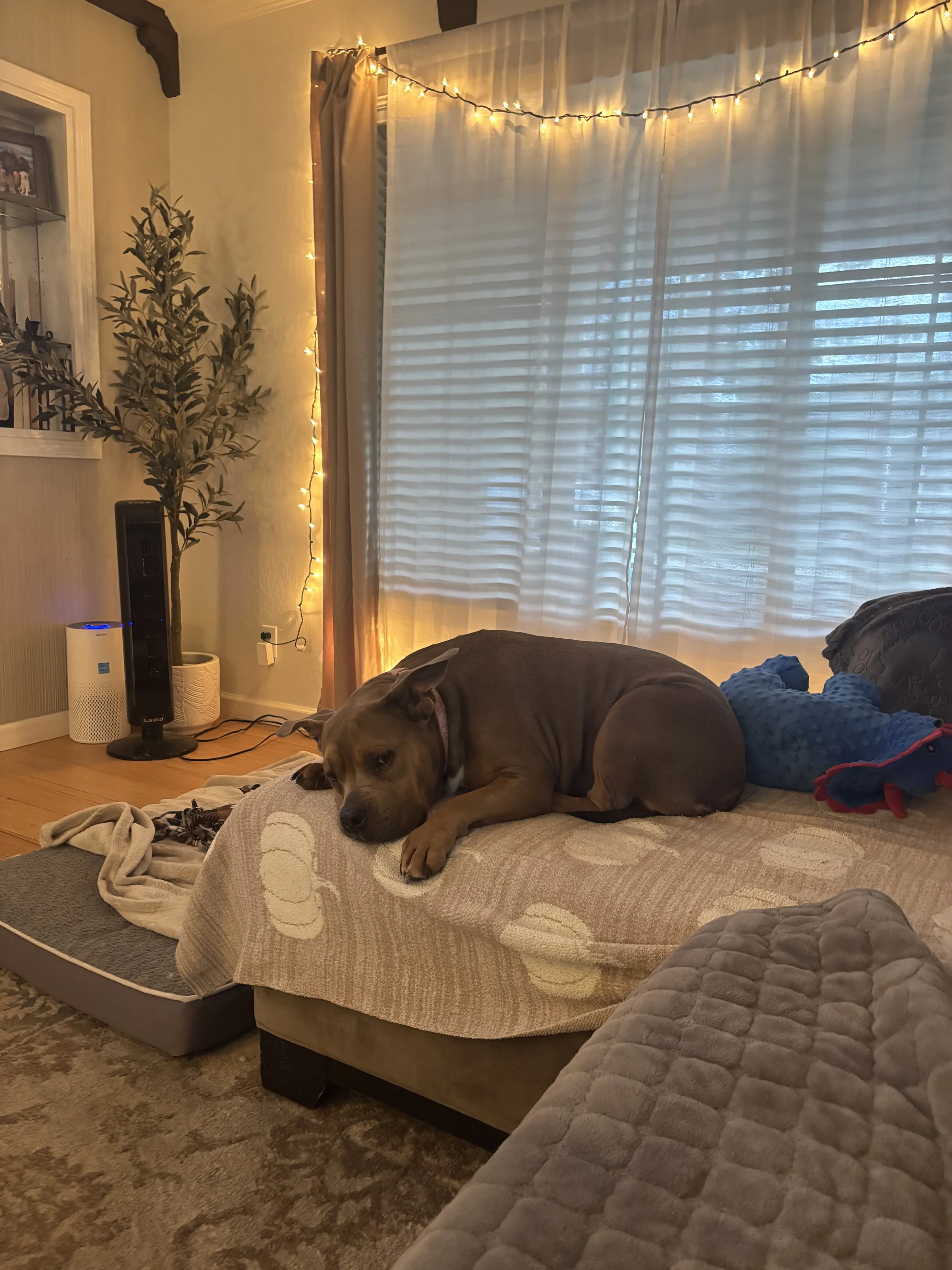 This girl is a total couch potato at heart and would be more than happy spending her days curled up beside her people, enjoying naps, movie nights, and quiet time at home. Roxy has a calm, loving presence that makes her such a special companion. She loves affection, loves being near her humans, and has the kind of loyal, tender personality that makes people fall in love with her quickly.
